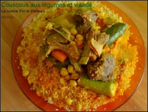 J’ai le plaisir de partager avec vous le savoureux couscous algérien aux légumes et viande qui est la recette traditionnelle en Algérie mais aussi dans tout le maghreb. Il existe plusieurs façons de le faire mais celle que je vous propose c’est ma maman qui me l’a transmise. Elle a toujours fait ainsi et a toujours eu un grand succès auprès de la famille et invités. Le couscous est à base de légumes (carottes, courgettes, navets et pommes de terre mais vous pouvez sélectionner d’autres légumes que vous appréciez) et de bons morceaux de viande tendre en bouche. Pour faire le couscous, ce n’est pas vraiment compliqué à faire mais pour un meilleur résultat, je vous conseille de faire 2 cuissons à la vapeur du couscous. En tout cas, je vous laisse le soin de tester par vous-même et de me dire comment vous l’avez trouvé. Voilà un plat sain et complet à partager avec tout le monde.